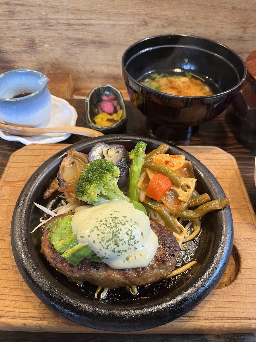 One of the standout menu items at Gingonchan Yokkaichi is the アボカド と チーズ の ハンバーグ です-a juicy hamburger patty topped with creamy avocado and melted cheese. This dish combines the umami of the beef patty with the freshness of avocado and the rich, gooey cheese, creating the perfect balance of flavors that meat enthusiasts will love. Another must-try is the みそ, a flavorful miso dish that adds a savory depth to your meal. These two signature dishes showcase the restaurant's commitment to high-quality, flavorful food.